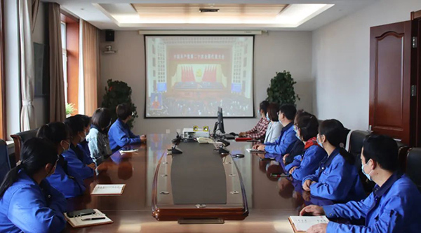 珍寶島藥業(yè)董事長方同華、黨委書記申哲洙、公司高層管理人員及來自哈爾濱、虎林、雞西各地區(qū)分公司的一百余名黨員通過線上+線下形式,集體收看了開幕會(huì)現(xiàn)場直播盛況,認(rèn)真聆聽報(bào)告內(nèi)容。